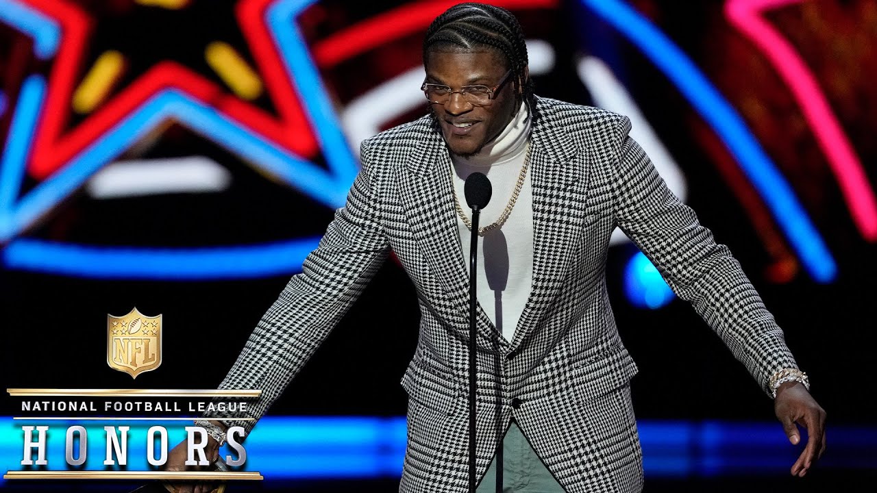 The 2023 AP most valuable Player presented by Invisalign is Lamar Jackson. Uh first and foremost, you know, I want to thank my Lord and Savior Jesus Christ. You know, without him, nothing is possible. Um, I want to thank my organization. You know, Baltimore Ravens for, you know, finding, getting this deal done.
