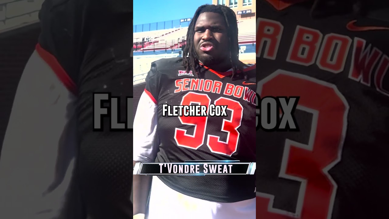 T’Vondre Sweat, at the 2024 Senior Bowl, talks about taking pieces of Fletcher Cox and Ndamukong Suh’s game and incorporating it into his play. #seniorbowl #nfldraft2024 #draftprospects
