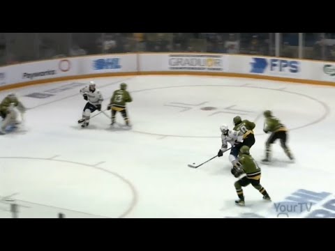 Tois and Mur on the back end to start this one Callum Richie starting for the asosa generals with robri and senica on his flanks and Conor punet Ben Danford starting on the back end for the generals now punet drifts one in off the end boards senica behind the goal shielding the puck turns pushed into the wall by meur and that’s how T meur has to play in this game physical on the back end Paul christopolis the former Dawn flyer on the left side to arnsby he chips it ahead and erle has punet lined up punet with a reverse hit erle comes away with it terion twisting and turning surrendering to Puck and Connor punet looking up ice takes a hit from terion those two offer a change Puck comes to the near side and Andrew LeBlanc trying to get around Danford LeBlanc driving the goal and he’s ha down off the draw arnsby battling with Richie and they’re still battling for the puck erle in the corner bumped once by punet erle spun off that hit Puck is in his skates and he carries on Richie hauled him down in behind the goal teron twisting and turning looking for someone to outlet to and loses an edge and Falls Danford was leaning on him no call on the play and there shouldn’t have been one Teran comes away with it with a are the generals players at Center ice it did change direction chasing after the pck meurin ter tyion comes back sends it behind his goal for christopolis meurin tyon put it into the skates of arnsby he batted it out into the Center Ice Area Danford sends it back in the Kyer looking for that puck it was a high looping dump in the puck sent out terion leaves it for arnsby accelerating through the center ice area arsby with a shot that was stopped by auster it got off arnsby stick in a hurry it was a really nice Breakout by the Battalion a really nice little touch pass by teron to start that pun it Danford backhanded up the left side senica finds robri he steps across the Blue Line looking to the middle here’s a chance back to the line long shot is handled by Oster and comp alinan Off the Wall Nelson preventing the entry into the Battalion Zone yeah he’s got to watch that Center they’re trying to get body position on the Battalion defense range and at the defensive Blue Line the Battalion have to have their head on a swivel and have body position in all forwards arnsby chasing after it for North Bay being watched closely by damato slings it rink wide looking for erdle here’s a shot and torren got in front of that one sending it wide of the goal second line of the Battalion buzzing trying to get some energy in this building it’s quieted down a little bit since that early first Power Play goal and now you hear chance of go troops go at Memorial Gardens a long shot which will stand him in good stead when he goes to the American Hockey League he’s strong like Bull on his skates he’s got really good balance and Edge work as well too he gets in that three-point stance and a button hook TI turn protecting that puck good luck there’s a button hook by Muran will Manis avoids the hit from bedkowski big big big toski is a big body out there listed at 6’4 to10 wakeley and bosi trying to Corral him Wakely moving in front of the goal and that pucked high in the air about 14 feet above auster he didn’t know where it was here’s Kennedy drifting in and he left the puck behind the knuckle pucked on him and he took his eye off of one spit second van steil working in tight Corners ripped one wide of the off the glass in behind auster Wakley turns and fires trying to get pucks on net something they were unable to do in the third period of game two is watch the way the puck was up in the air and it’s a jump ball right now watch for the hand pass from the green jersey that can’t happen but good off against arnsby arnsby pulled it to the wall Roi trying to erase him behind the goal mlli in a battle with tyion trying to get away from tyon tyion is relentless on the four check and erle is hit senica makes a nice move to get around Kennedy takes the puck in behind the goal then he’s upended no call on the play good non call he left his feet back to the Line Pet finds Danford sets fires blocked by K part of the corner with a 0% scoring chance now a battle for the puck in the corner robri comes away with it and Ashawa sets up shop melli looking for Richie on that Far Side senica robrick drifting backwards threw it in front for rolloff and he tipped it just wide melli at the point thinking about changing places with senica but doesn’t Richie comes off the wall so does senica down low Rubik turns and fires and he misfired Wakley is away mlli is back wakeley takes the shot and melli getting a stick in the shooting Lane Richie Sid step a hit from erle melli up on the right side senica having to contend with Bronson ride ride held his ground and senica ended up on the sheet of his pants at the Battalion Blue Line Richie brings it in Torrance got to a puck quickly sends it around and bursby wins the draw erle to a puck on the far side but meeting him there was senica clearing attempt fails Danford kept it in andford is hit hard on the far side a penalty coming up and rock holds it fires wide of the net penalized player tering his back on the ice senica they score on the delayed penalty Callum Richie set up by Sena and this game is tied that was a delayed penalty you throw the extra attacker on there and really nice play by Sakai he fakes shot drives through the slot area watch him drop the shoulder here he’s going to drop the shoulder to fake goes weak side to the not quite the back door but in his offside Wing Callum Richie just sliding down like a telescope present starting to look like flag football out there break no contact I won’t mind the officiating as long as it’s going to be consistent for both sides I want a nice slash maybe a take out both sides here’s melli takes the shot it doesn’t get through five on five action and this game is tied as we approach the final