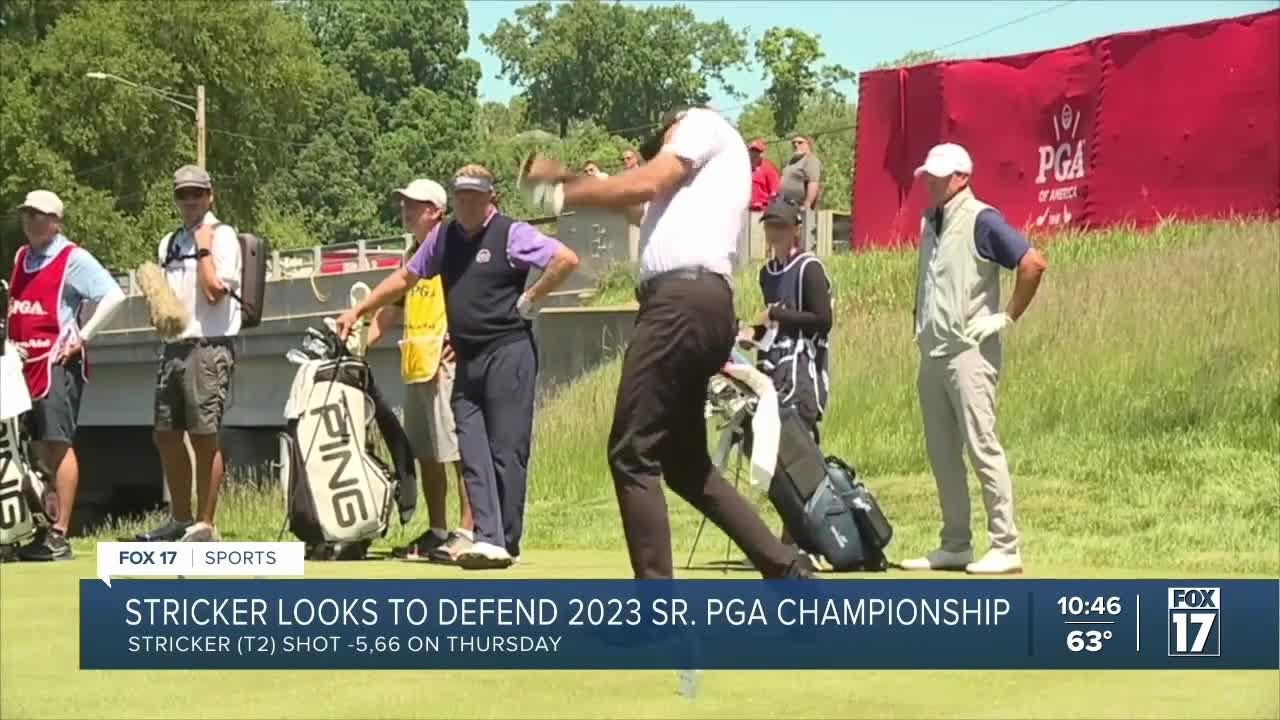 Harbor Shor is playing host to the Senior PGA Championship for the final time in Benton Harbor round one underway a great crowd for a Thursday afternoon par 3113 Mike Weir drops a dart on the green a few feet away from the pin he’d sink the birdie Putt and finish today five under 66 tied for fourth defending champ SE Striker on 15 an incredible approach shot nearly hits the pin he T tapped that one in for birdie one of his seven on the round he’s also five on Stuart sink playing a longside striker going toe to- toe all day 18th hole sinks to par putt he had two Eagles on the day finishing four under Richard green is your leader at seven under through 18 holes it’s a good start and we’ve got a long ways to go um you know but it was important to get off to a good start um I’m surprised that the scores are that low played pretty well overall I I gave away a couple shots by just putting it out of position and nothing the course surprised me about I just I knew that you didn’t want to be in these positions and I hit there anyway