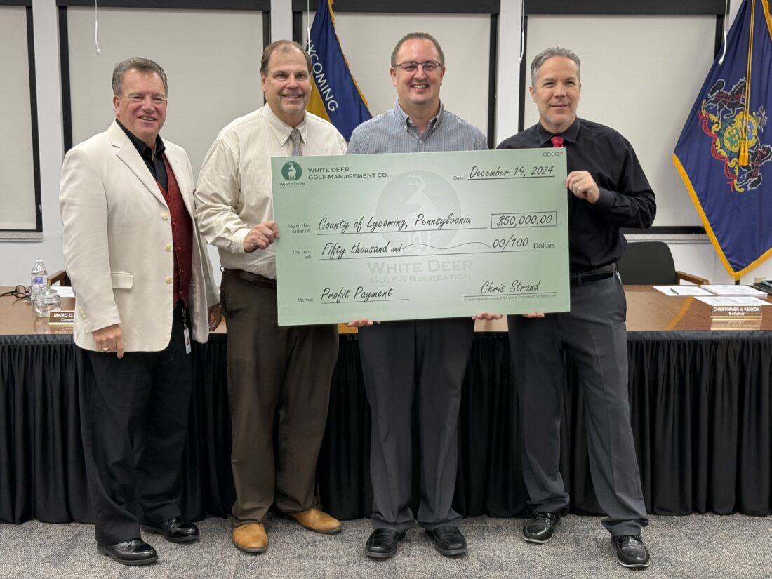 Another “tremendous” season is in the books at the White Deer Golf Course, with the county receiving a $50,000 check as evidence of the course’s success. The check brings the total from the golf course this year to $100,000.