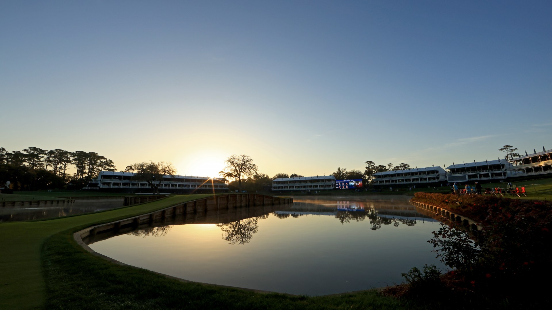 Sunrise over the 17th hole at the Players Championship.
