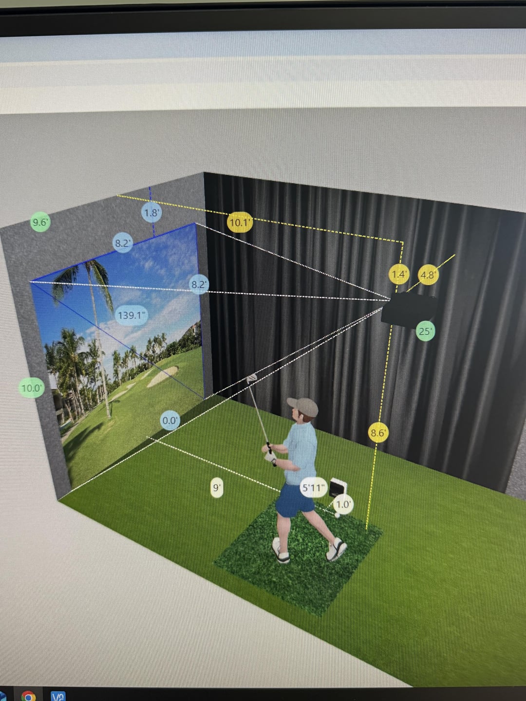If you already have the projector, just put it on the floor below where you think it should go and project the image to line up the width, then play with settings. See if you can adjust it a little over and a little under the side edges (or a lot). That’s the spot/distance you’ll need from above. My BenQ wasn’t perfect for either one of the calculators, although BenQ was the more accurate. The floor test is what you do before installing the mount. Point is, make sure you have adjustment options from wherever you install it.