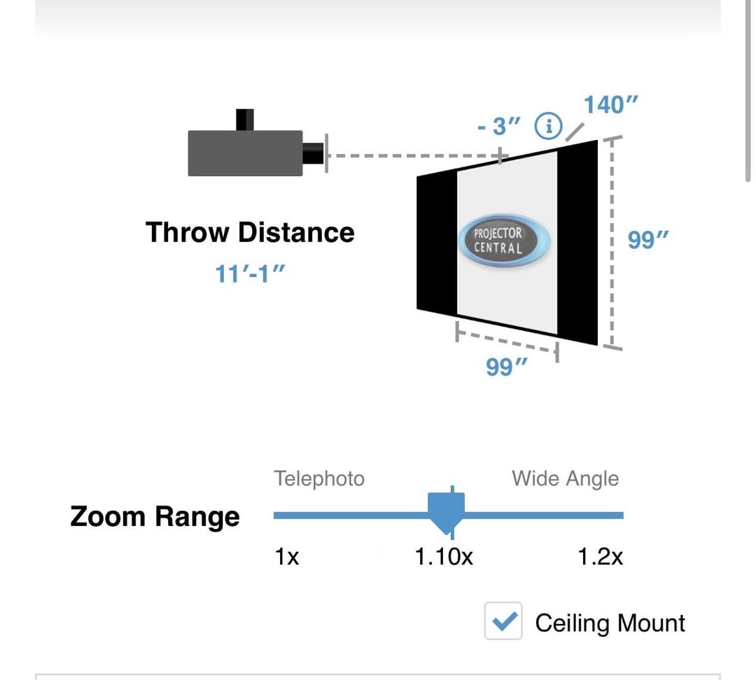Also, my screen is 99” wide x 91” tall but I can’t account for that on the calculators and had to do 99” x 99”. From my understand the width is more important when figuring out throw distance, is that correct?
