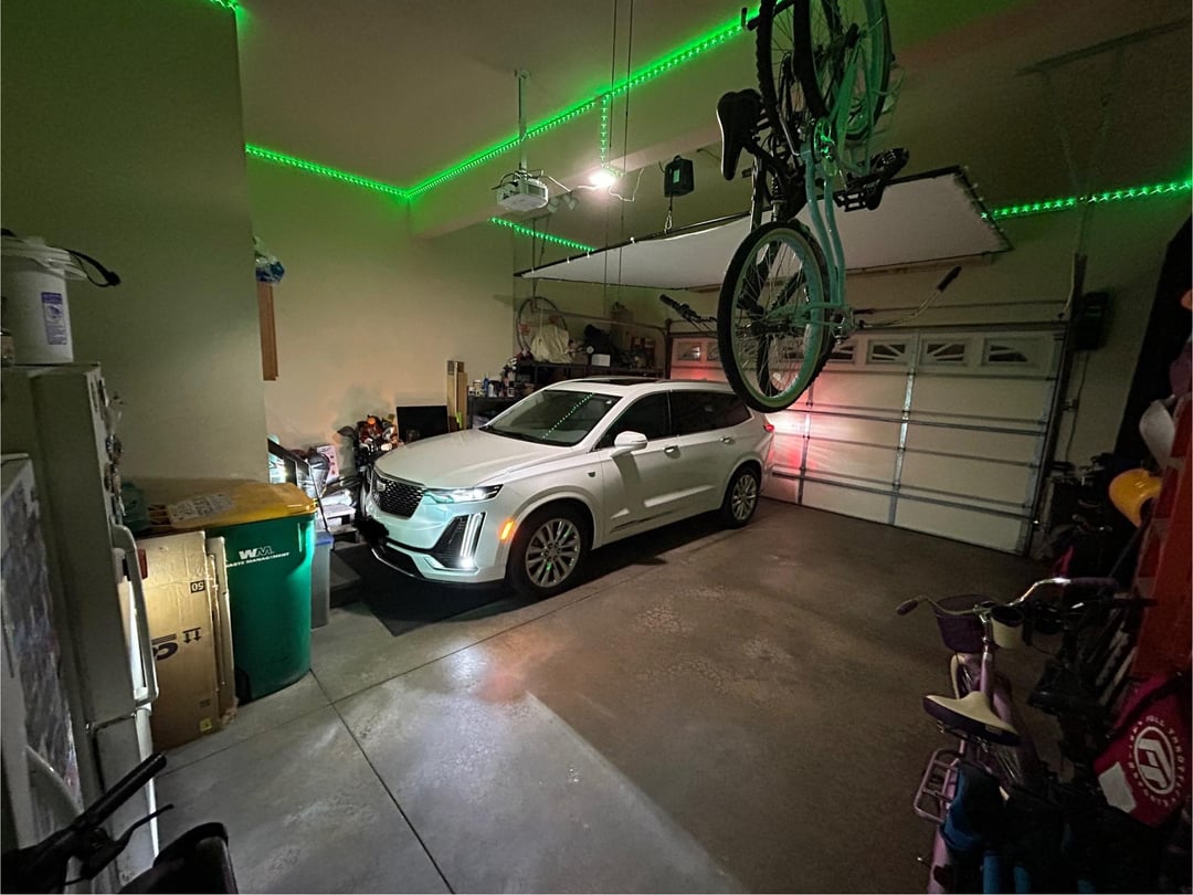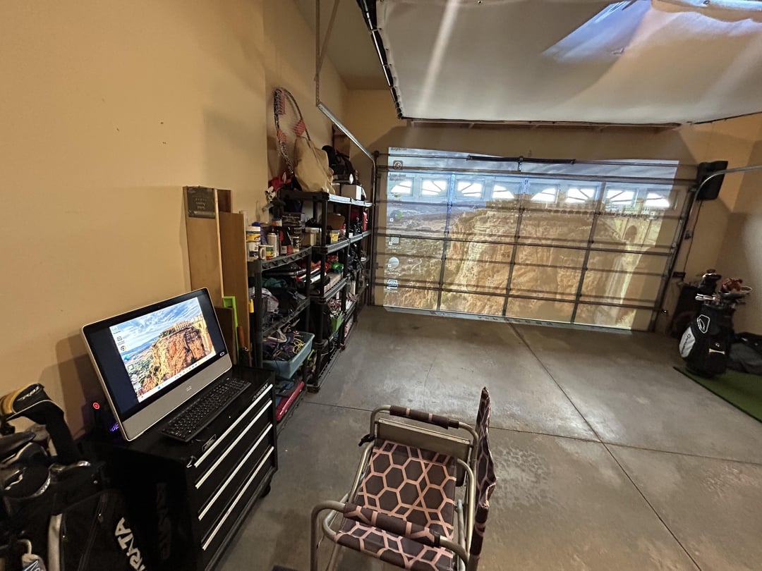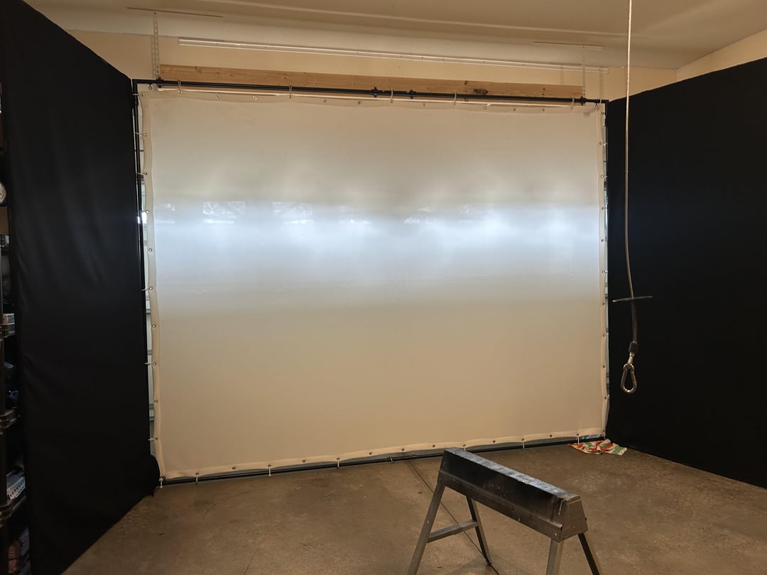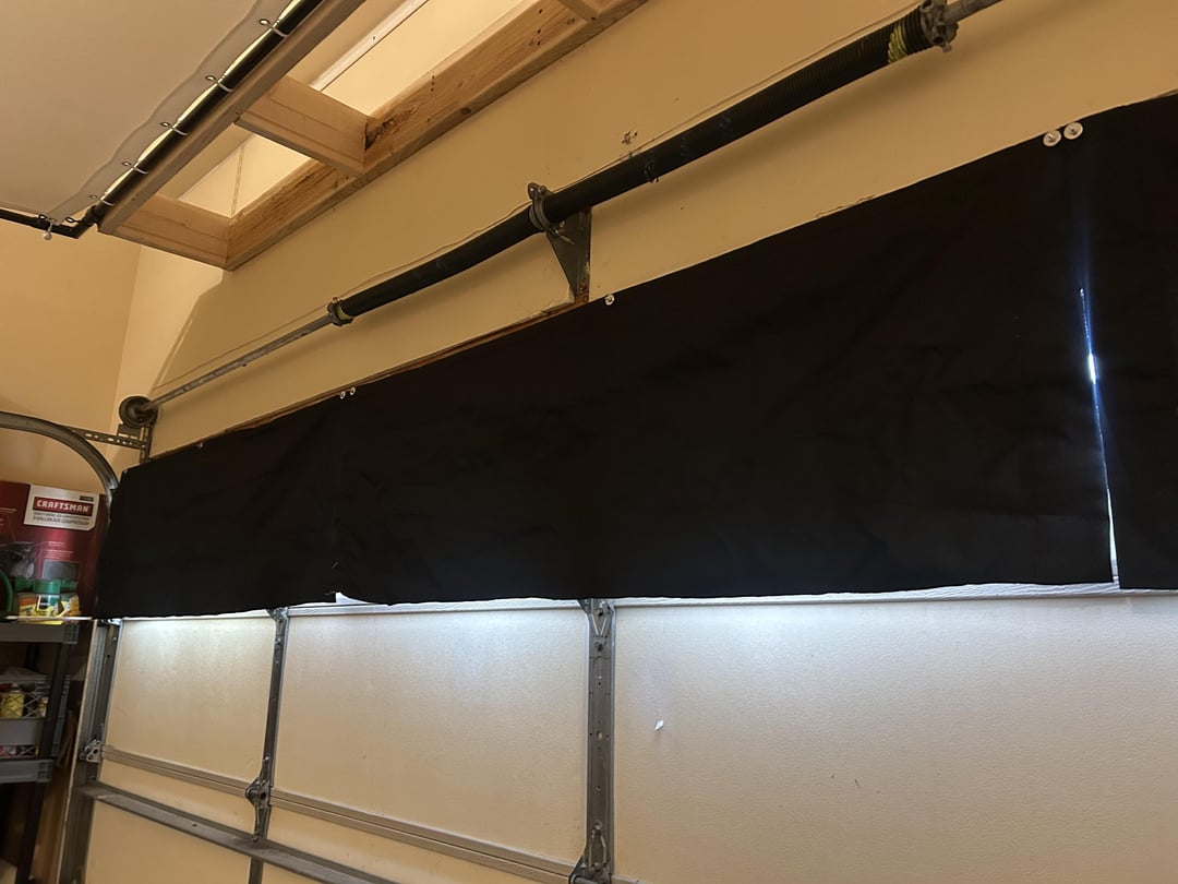 Then I took black out curtains and added magnets to block the light from the garage door. Works well but I need to add some Velcro to the bottom so they “seal” all the light out .. you will see them in some of the pictures