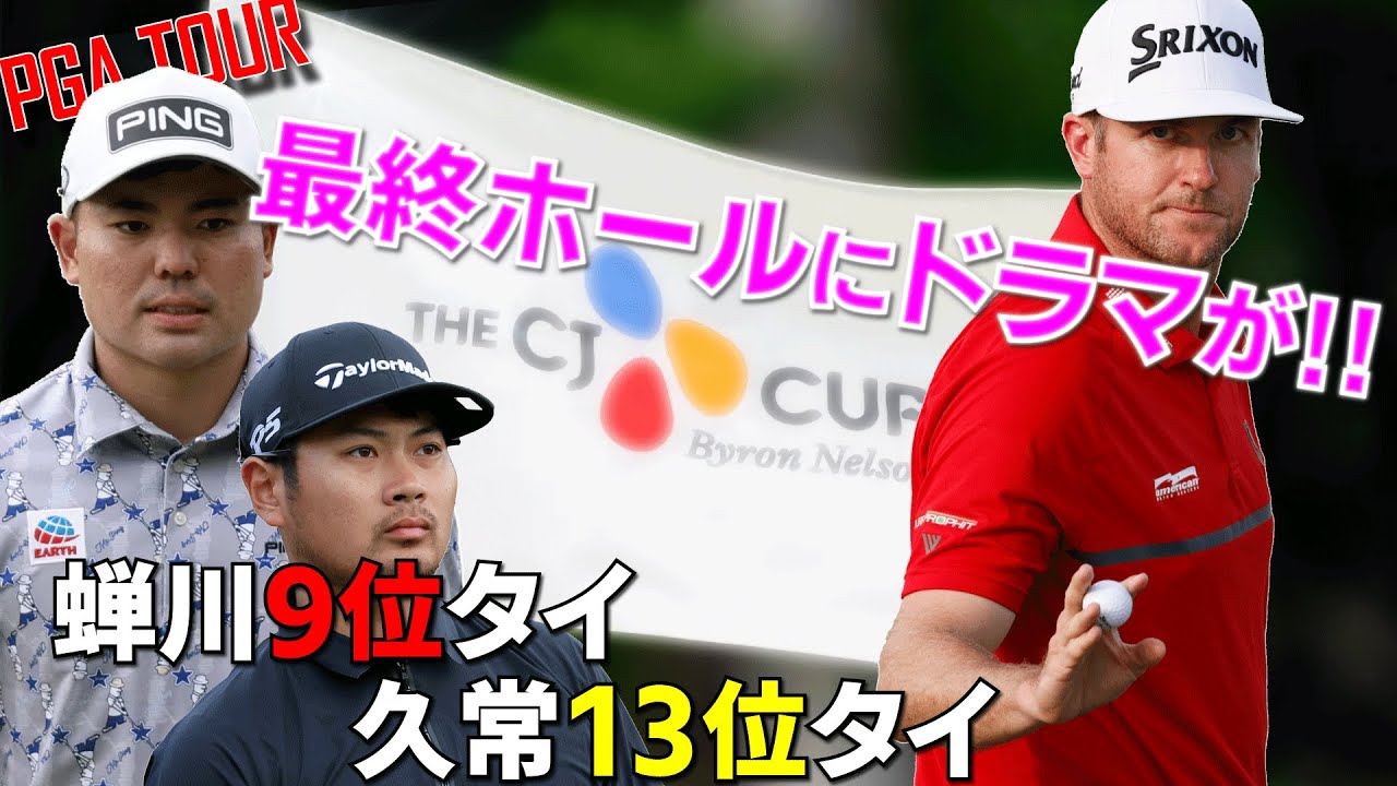 こんにちは今週のPJツ情報です先週は新 スポンサーとなって新しくなったAT&T パイロンネルソン優勝争いは最終ホールに ドラマが待っていました後ほど振り返って いきます今週はシグネチャイベント第6戦 ウェルズファーゴチャンピオンシップ松山 秀樹選手はそちらに出場し久両選手は裏 大会のマートルビーチクラシックに出場 予定です来週はいよいよメジャー第2戦 PGAチャンピオンシップ来週からビッグ トーナメントが続いていきます今週末に 全米プロ開幕直前スペシャルの動画を出し ますのでよかったらご覧 くださいそれでは先週のAT&T バイロンネルソンを振り返っていき ましょうリーダーボードはこのようになり ました中盤まで大根戦でしたが最終的には カナダのテイラーペンドリスが優勝試合 展開は最終ホールでまさかまさかの出来事 が起きました最終日優勝争いはアメリカの のベンコールズジイナップそしてカナダの テイラーペンリスでしたベンコールズは4 番から6番ホールで3連続バーディを奪う と8番ホールでもバーディ前半で4つ 伸ばし逆転でシエペンドリスは2バーディ ワンボギーで追いかける展開に後半に動い たのはジェイクナップ9番ホール10番 ホールで連続バーディとして追い上げ ムードになりましたが1213番ホールで 連続ボギーこれが非常に痛かったですね ここでジェイクナップは脱落ペンリスは 12番ホールでバーディを奪うもその後は 到着状態そんな中PJ初優勝を狙う コールズが終盤の1617番ホールで連続 バーディこれでペンリスに1ダサをつけて 最終ホールへと向かいました18番ホール は552ydのパー5でランクは184 日間通してボギ以下が14個しか出ておら ず普通に行けばコールズの勝ちだろうと 思われていました最悪コールズがパーで ペドリがバーディでもプレーオフだったん ですがやっぱりゴルフは最後まで何が 起こるかわからないものですねその最終 ホールを細かく見ていきます緑色が コールズ青色がペンリスとなります コールズはちょっと左に引っかけるも バンカーには入らず決して最悪の状況では ありませんでしたペンドリーノ真ん中で 最高のポジションコールズのセカンドは 手前のバンカーかと思いやバンカーと バンカーの間のラフェそれを見た ペンドリーノショットでまさかの出来事が コールズのライは打ち上げでピンはやや 手前ふわっと浮かせてグリーンにさえ 乗せれば良かったんですが手前でざっくり してしまいグリーンに届かずまさかの展開 にその次のショットも非常に難度が高かっ たんですがなんととか2m弱の位置にけ パーセーブは十分可能対してペンドリーノ を決められずプレーオフが濃厚となりまし たしかしここで第2のまさかが発生 コールズは残り2mほどのパットを外して しまい通婚のボギーヘンドリーパッドを 沈めまさかまさかの逆転勝利いやこんな こともあるんですねコールズの3打目は 解説もおっしゃってましたがクラブを シャットにしてアプローチする選手なので 打ち上げのライだとああいうことが起きて しまいがちなんですよねもうちょっと フェースを開いていればクラブが抜けて くれていたと思いますただいつもやってい ないことをやるのは勇気がいりますからね ましょうがないですかねペドリはこれで 74試合目にしてPJ2初優勝またも世界 ランクトップ50圏外からの優勝という ことになりました2つも全体的にバランス が良かったですストロークエンドトータル 1アウザグリーン3位オザT6位と しっかり攻略フェンリスはちょっと変わっ たスイングでジムフューリックとちょっと 似てますよねそれでいて飛ぶんですよPG に参戦して3年目で栄冠を掴み取りました 今年は本当にカナダ勢が元気ですねこの まま行けば彼もプレジデンツカップに選ば れそうです日本勢ですが久涼選手とセミカ 大雅選手が出場2人とも大検討を見せまし た まず久選手ですが最終日セブアンダーを マークして13位対4日間通して全て アンダーパーでもあり1月のアメリカン エキスプレスの11位タについで高成績を マークセミカタイガ選手はスポンサー推薦 で出場し上位進出を目指していました こちらも最終日セブンアンダ6番ホールで イーグルを奪うなど実力を発揮フゼアで初 のトップ10フィニッシュやっぱりさすが ですねトップ10に入たことで次戦の大会 の出条件を獲得シグネチャイベントには出 られないと思うので裏大会に出るのかそれ とも全米プロ後の試合に出るかちょっと その辺りは分からないですせっかくの チャンスなのでPJ2で試合に出た方が いいと思います2人とも本当にいい活躍を 見せてくれまし たではAT&Tバイロンネルソンを終えて の最新の世界ランキングです順位に変動は ほとんどありませんでした予選落ちして しまったジダスピースが20から陥落マシ パボンが20へと上がってきています優勝 したテイラペンリスは107位から58へ とジャンプアップしています続いて フレックスカップランキングトップ10は ほとんど変動なしステファンイエガーが 13